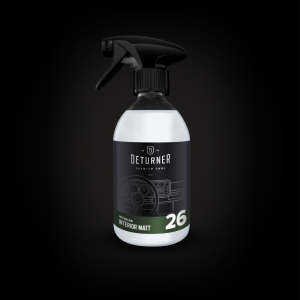 Matowy dressing do wewnętrznych tworzyw sztucznych. Odżywia i chroni powierzchnie przed UV, pozostawiając naturalne matowe wykończenie o umiarkowanym stopniu przyciemnienia. Wydajny oraz łatwy w aplikacji pozostawi powierzchnię antystatyczną. Jest odpowiedni dla gładkich powierzchni, ponieważ nie zostawia smug.